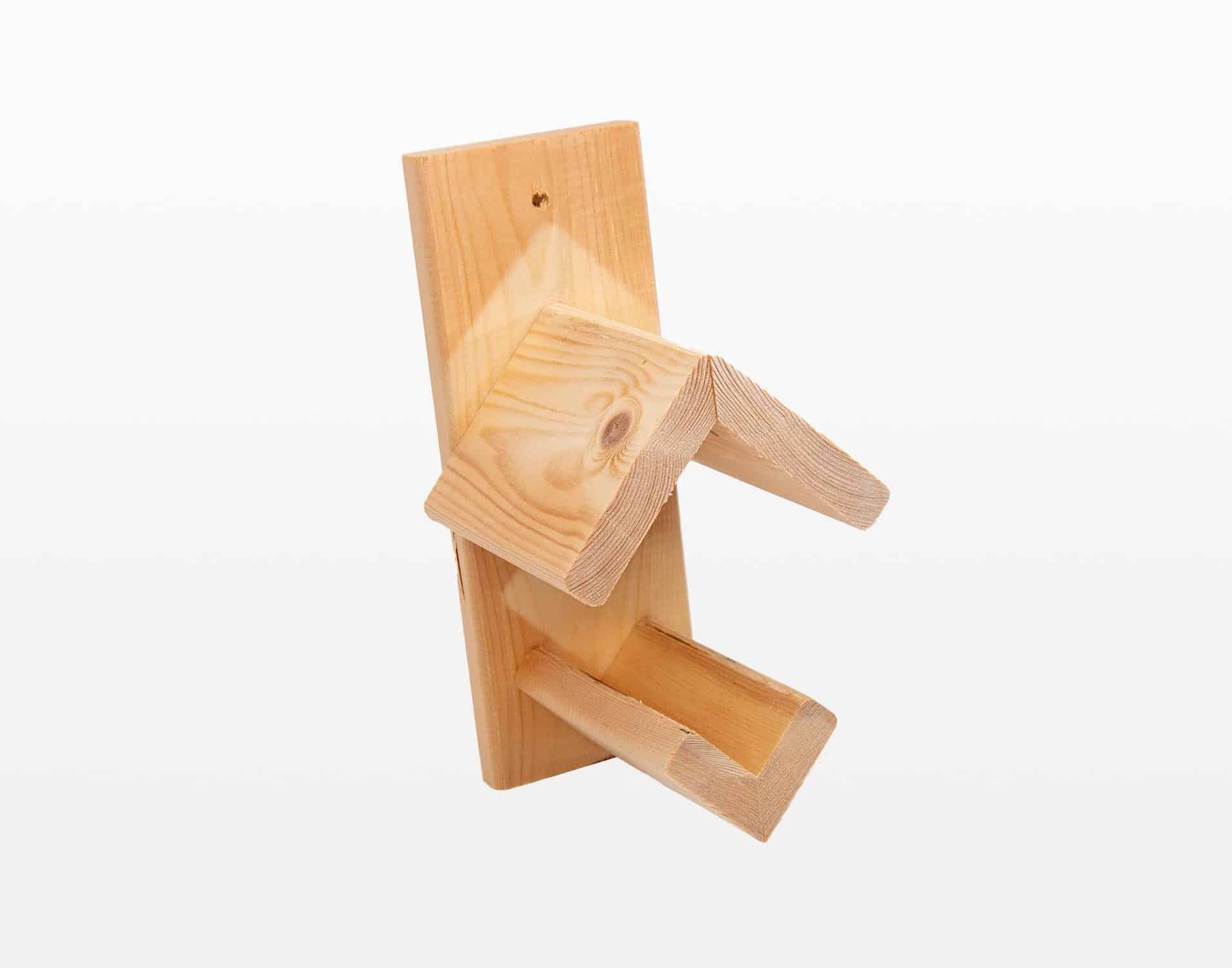De pindakaaspothouder is gemaakt van vurenhout en voorzien van boorgat zodat deze eenvoudig op te hangen is aan een boom, schutting, muur of balkon. De pindakaaspothouder heeft een standaard formaat en daarmee geschikt voor de meeste pindakaaspotten, bavaroise en vogelmousse. De werking is zeer eenvoudig, draai de dop van de pindakaaspot en schuif de pot eenvoudig in onze houder. Een dakje beschermt het tegen weersinvloeden en aan de onderkant van de houder hebben de vogels voldoende steun en bescherming om rustig te eten.