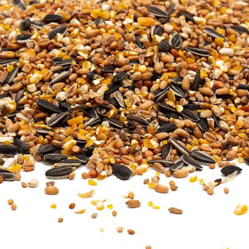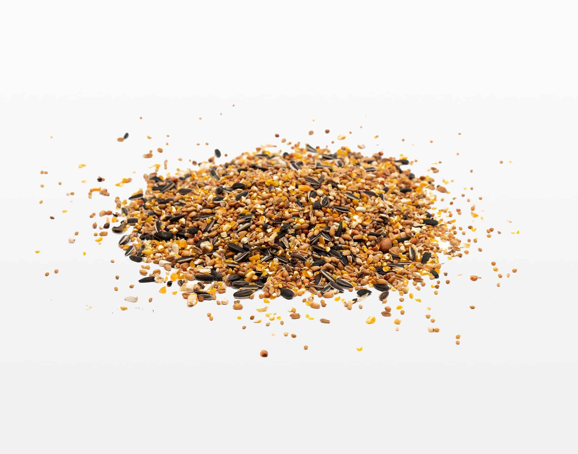 De samenstelling bestaat uit tarwe, mais, sorghum, milletzaad, zonnepitten, kardizaad en gepelde pinda’s. Een voedzame mix zonder kunstmatige toevoegingen.