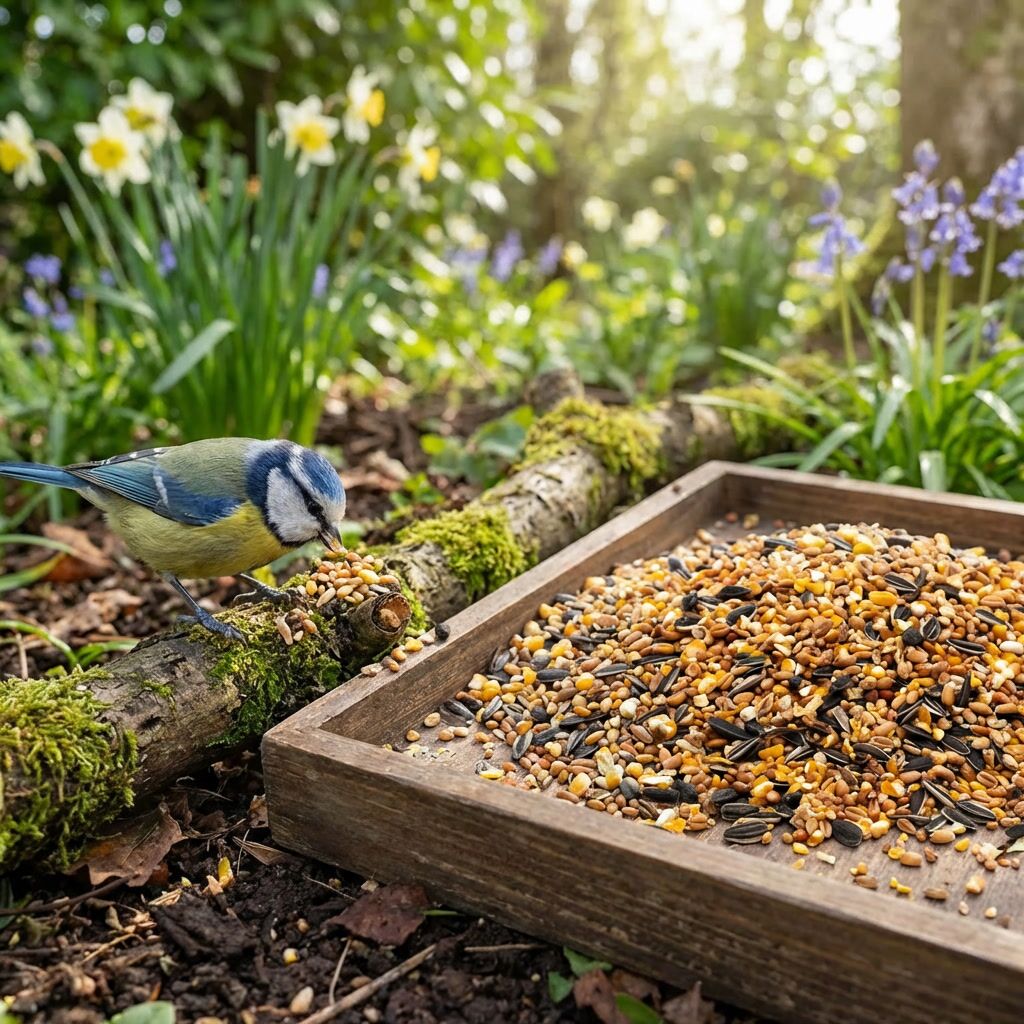 | Roodborstjes | Naar eigen inzicht, afhankelijk van seizoen en behoefte | Eiwitrijke aanvulling | Voer laag bij de grond in schaduwrijke zones |